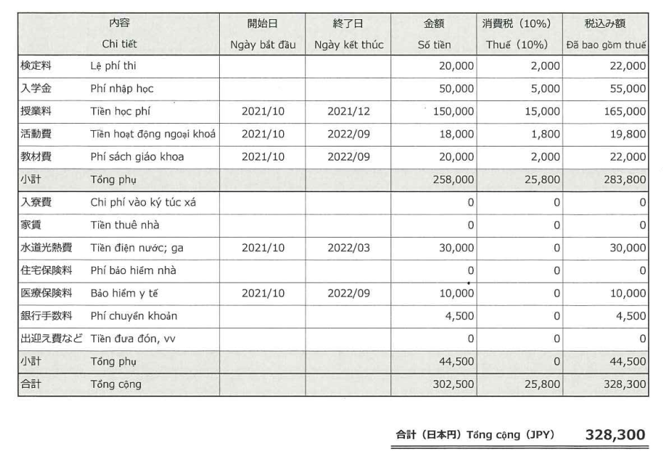 - Trường Active- Tp.Chiba: mức đóng lần đầu 300,000yen