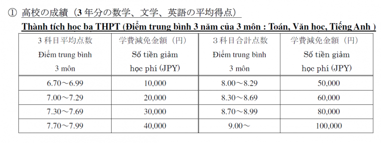 - Giá trị học bổng: 1,200,000yen (120 vạn yen=260 triệu)